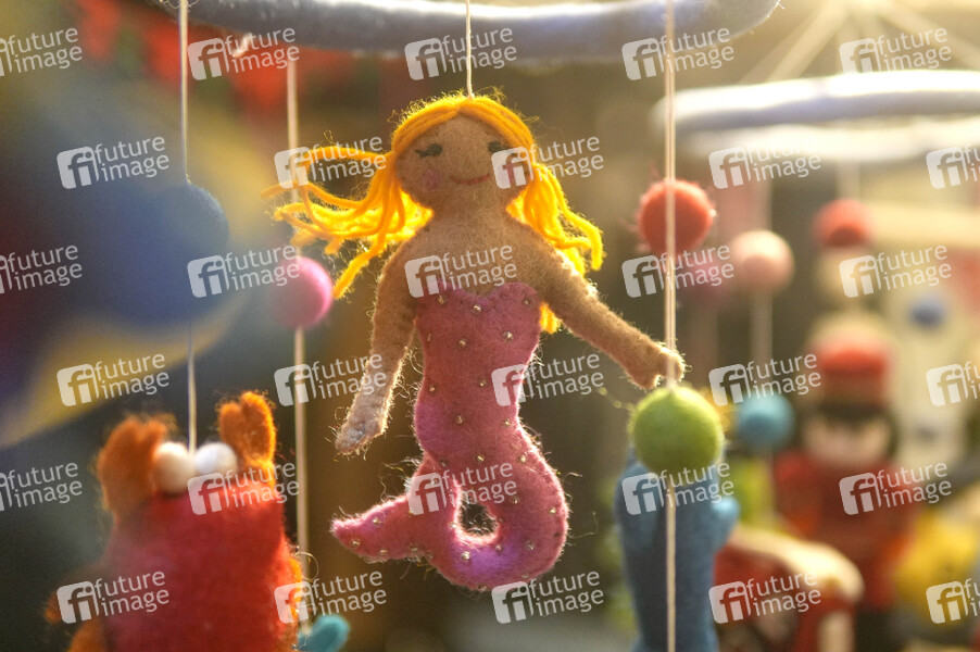 Meerjungfrau aus Filz auf dem Alt-Rixdorfer Weihnachtsmarkt rund um den Neuköllner Richardplatz. Berlin, 08.12.2024