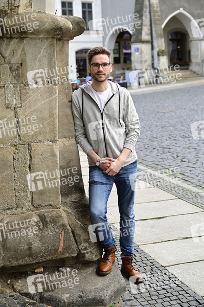 Lukas Natschinski bei einer exklusiven Sightseeing-Tour auf dem Untermarkt in der Görlitzer Altstadt. Görlitz, 20.04.2025