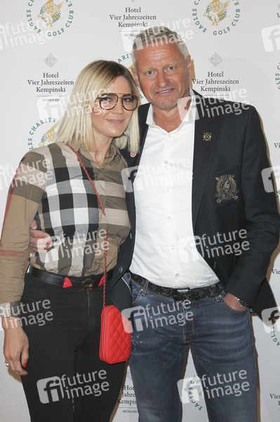 Stefan Blöcher mit Freundin Anna Posch bei der Eagles-Magazinpräsentation 2019 im Hotel Vier Jahreszeiten Kempinski. München, 14.04.2019