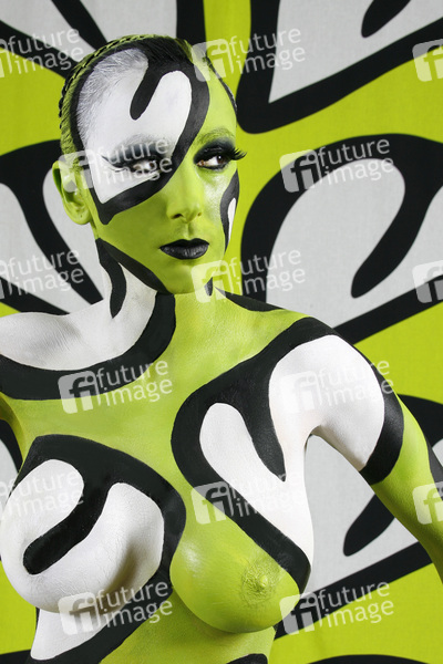 Bodypainting, Stoffdesign Anna Efverlund, Erotik, Frau, nackt, drinnen, weiblich, Muster, Chamäleon, erotic, woman, nude, indoor, female, chameleon