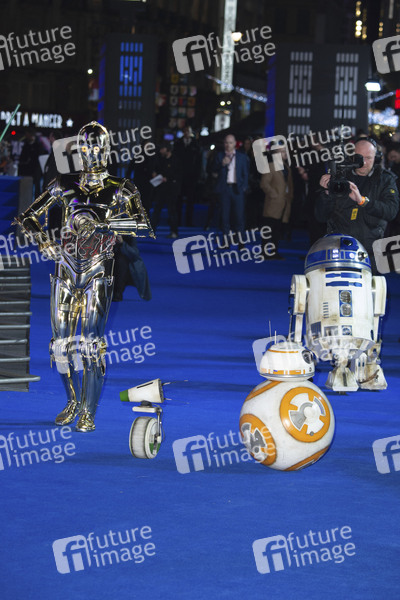 C-3PO, D-O, BB-8 und R2-D2 bei der Europapremiere des Kinofilms 'Star Wars: Episode IX - The Rise of Skywalker / Star Wars: Episode IX - Der Aufstieg Skywalkers' im Cineworld Leicester Square. London, 18.12.2019