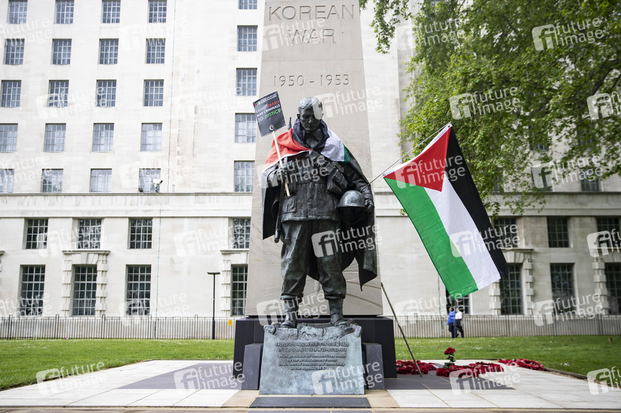 Tausende Menschen bei einem Protestmarsch, organisiert von pro-palästinensischen Organisationen. Viele Teilnehmer trugen Palästina-Fahnen und 'Free Palestine'-Banner. Ein Sprecher der Gruppe forderte die britische Regierung auf, ihre militärische, diplomatische und finanzielle Unterstützung für Israel umgehend einzustellen. London, 21.03.2021