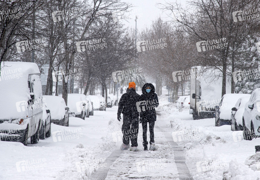 Das Sturmtief Filomena sorgt in der Region Madrid und anderen Teilen Spaniens mit starken Schneefällen für Chaos. Die Hauptstadt Madrid wurde durch historisch heftigen Schneefall lahmgelegt. Seit 50 Jahren hat es nicht so geschneit. Der Verkehr ist in weiten Teilen des Landes zusammengebrochen. Torrejón de Ardoz, 09.01.2021