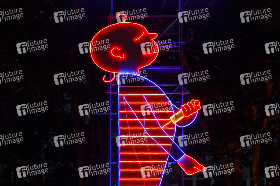 Drogen, Skandal, Kunstwerk, Kunst, Droge, Heroin, Heroinkonsum, Konsumraum, Drogensucht, Drogensüchtige, Drogen-Kunst, Drogen-Kunstwerk, Reissdorf, Reissdorf-Werbung, Reissdorf-Männchen, er spritz, sie spritzt, Heroinsucht, heroinsüchtig, Ausgrenzung, Volksdroge, Gesellschaftskritik, Kunstinstallation, Leuchtreklame, Abwandlung, Suchtmittel, Drogenabhängigkeit, Drogenabhängige, Drogenhandel, Drogenszene, Symbolbild, Symbolfoto
