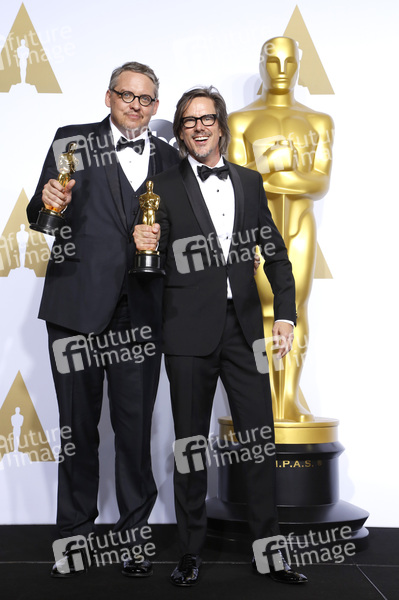 Adam McKay und Charles Randolph (Bestes adaptiertes Drehbuch 'The Big Short') im Presseraum der Oscar Verleihung 2016 / 88th Academy Awards im Loews Hollywood Hotel. Los Angeles, 28.02.2016