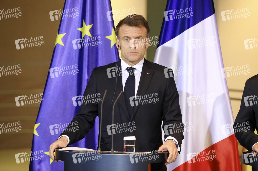Emmanuel Macron beim Empfang des Staatspräsidenten der Französischen Republik zu einem gemeinsamen Gespräch mit dem Bundeskanzler mit anschließendem Pressestatement im Bundeskanzleramt. Berlin, 18.03.2025