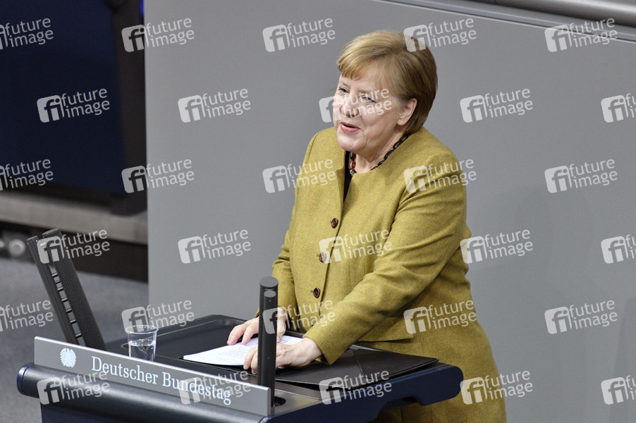 Angela Merkel bei der Regierungserklärung zur Bewältigung der COVID-19-Pandemie in der 209. Sitzung des Deutschen Bundestages im Reichstagsgebäude. Berlin, 11.02.2021