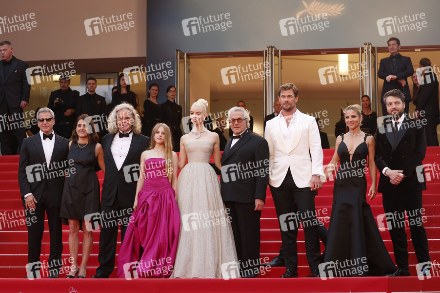 Michael DeLuca, Pamela Abdy, Doug Mitchell, Alyla Browne, Anya Taylor-Joy, George Miller, Chris Hemsworth, Elsa Pataky und Tom Burke bei der Premiere des Kinofilms 'Furiosa: A Mad Max Saga' auf dem Festival de Cannes 2024 / 77. Internationale Filmfestspiele von Cannes im Palais des Festivals. Cannes, 15.05.2024