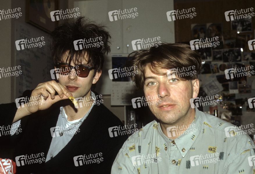 Ian McCulloch und Will Sergeant von Echo & the Bunnymen während eines Interviews bei WEA Records. London, 28.05.1987