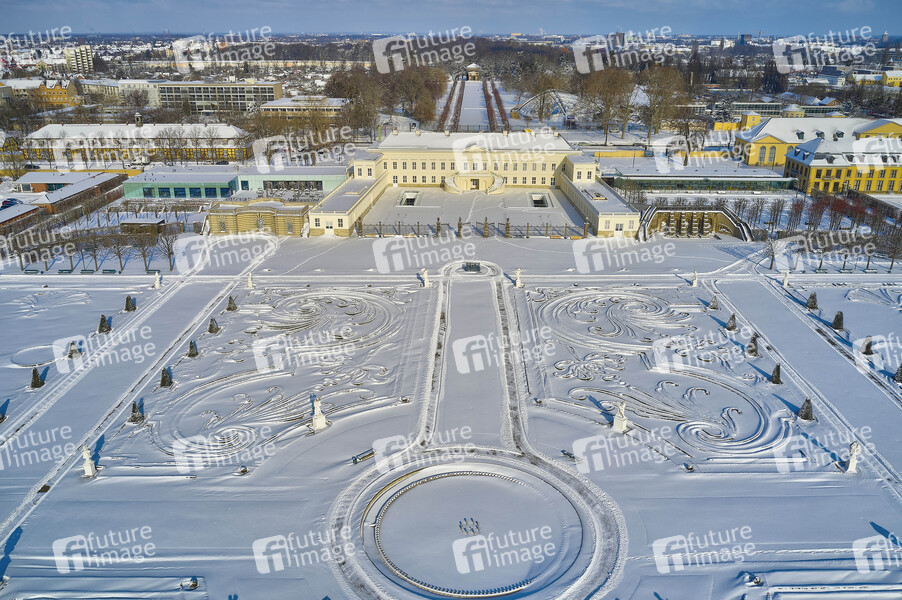 Luftaufnahme, Großer Garten, Barockgarten, Sehenswürdighkeit, Sightseeing, Tourismus, Veranstaltungsort, Berggarten, Winter, Schnee