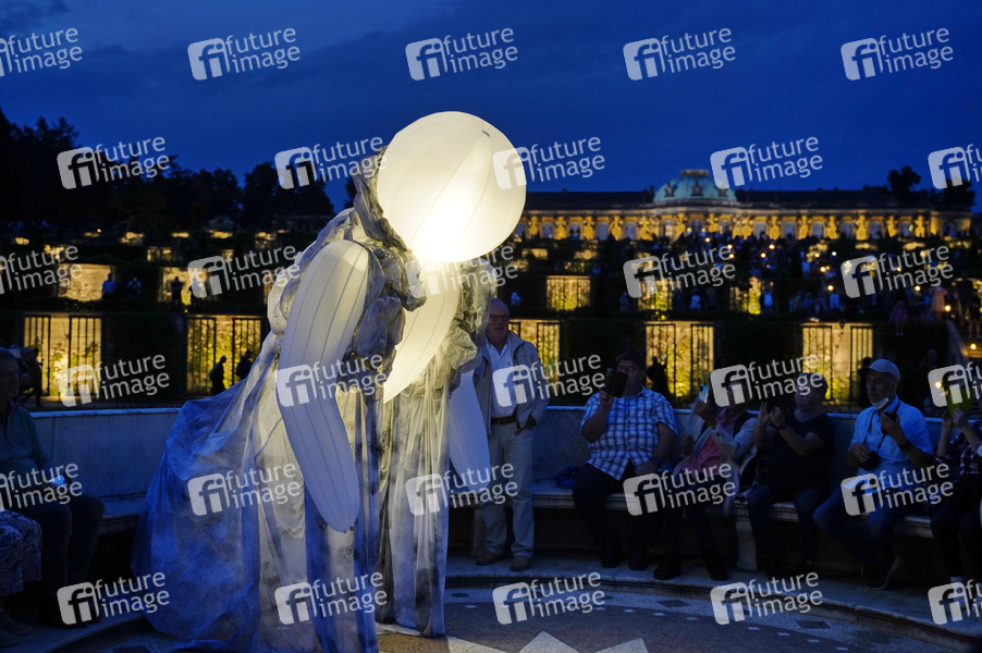 Company Quidam's bei der Potsdamer Schlössernacht 2021 im Schlosspark Sanssouci. Potsdam, 21.08.2021