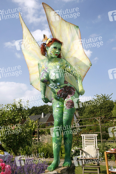 Bodypainting und Fotoshooting mit Model Nadine auf dem 'Tag des offenen Gartens' in Stadthagen-Niedernwöhren. Künstler: Jörg Düsterwald