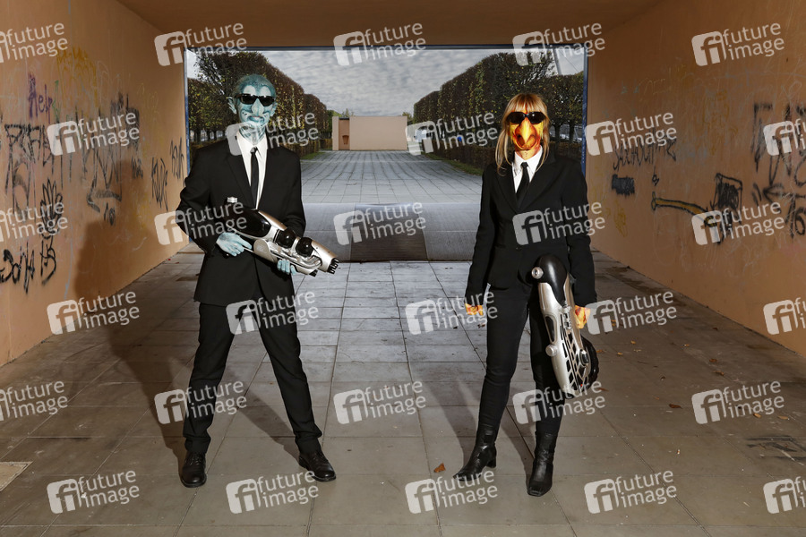 GEEK ART - Bodypainting and Transformaking: Men in Black Photoshooting mit Maria Skupin und Paul Skupin als außerirdische MIB im Expo Park in Hannover. - Ein Projekt des Fotografen Tschiponnique Skupin und des Bodypainters und Transformakers Enrico Lein