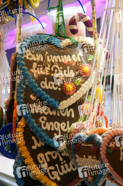 Lebkuchenherzen auf dem Weihnachtsmarkt 'Lichtenberger Winterzeit' an der Landsberger Allee im Berliner Bezirk Lichtenberg. Berlin, 03.11.2024