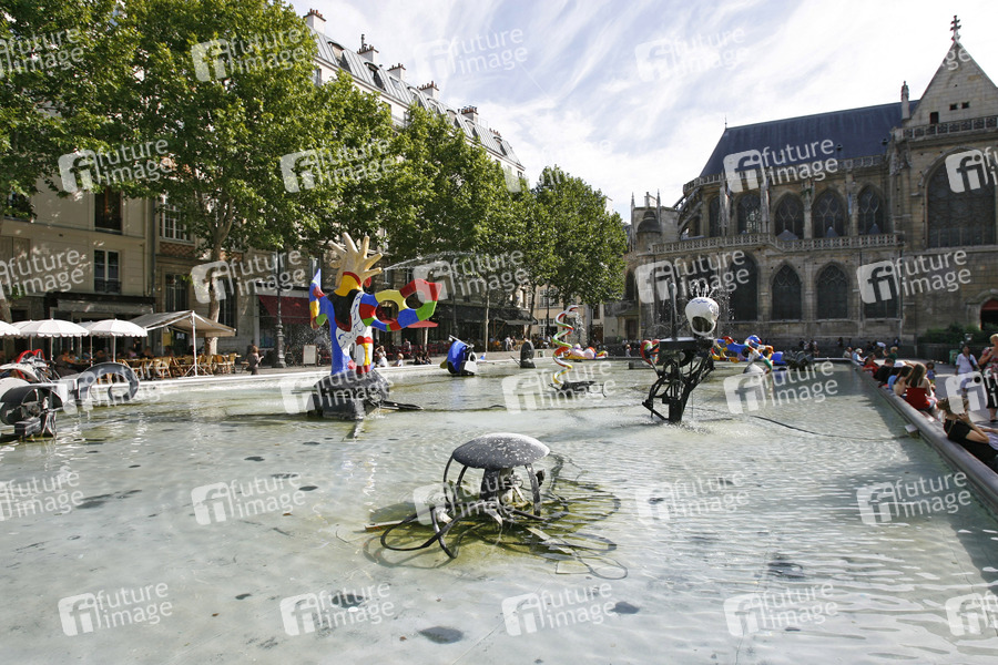 wurde von dem Schweizer Bildhauer Jean Tinguely zusammen mit seiner Lebenspartnerin Niki de Saint Phalle entworfen und 1982/83 ausgeführt, der nach Igor Stravinsky benannte Brunnen setzt sich aus 16 beweglichen und wasserspeienden Einzelplastiken zusammen, Gestaltung bezieht sich auf die wichtigsten Kompositionen des russischen Musikers, Wasserbecken 1650 cm × 35 cm × 3600 cm, Tinguely entwickelte schwarze Maschinenplastiken aus Eisen, Saint Phalle gestaltete bunte Fabelwesen und Nanas