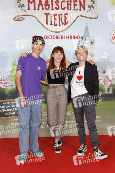 Loris Sichrovsky, Emilia Maier und Leonard Conrads bei der Premiere des Kinofilms 'Die Schule der magischen Tiere' im Cinedom. Köln, 25.09.2021
