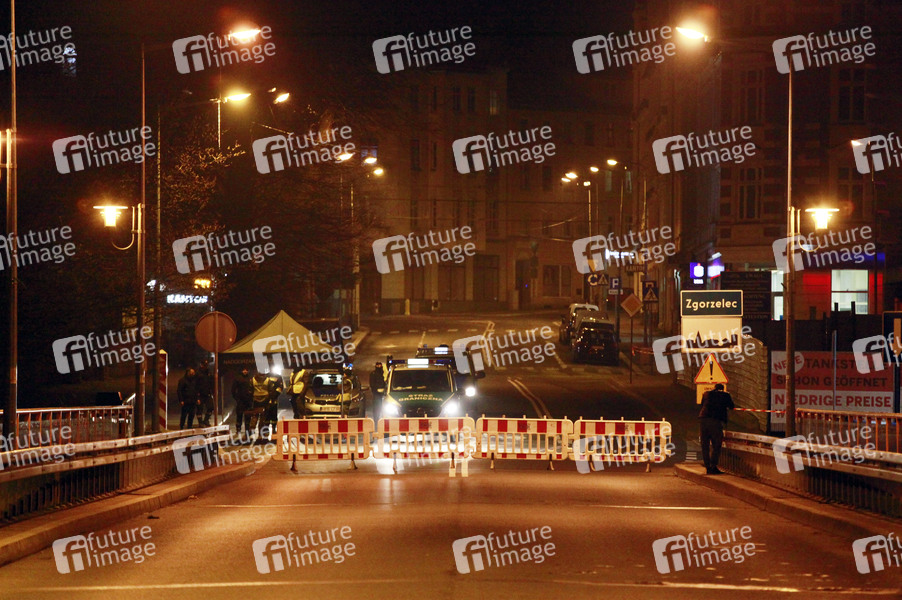 Um Mitternacht schließt Polen wegen der Corona-Krise die Grenze für Ausländer an der Stadtbrücke zwischen Görlitz und Zgorzelec. Görlitz, 15.03.2020