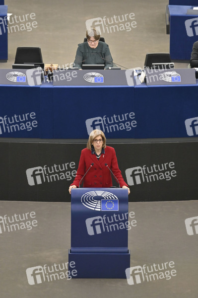 Stella Kyriakides bei einer Plenartagung über den Schutz von Tieren beim Transport im Plenarsaal des Europäischen Parlaments. Straßburg, 20.01.2022