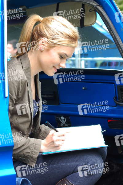 Am Filmset der NBC-Universal TV Serie 'Haven'. Dreharbeiten zur Episode 207 'That Ties that Bind' an der Old Post Road in Hubbards, Nova Scotia