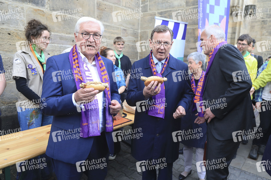 Frank-Walter Steinmeier, Bodo Ramelow und Andreas Bausewein beim Rundgang nach der Eröffnungsfeier des 103. Deutschen Katholikentages auf dem Erfurter Domplatz. Erfurt, 29.05.2024