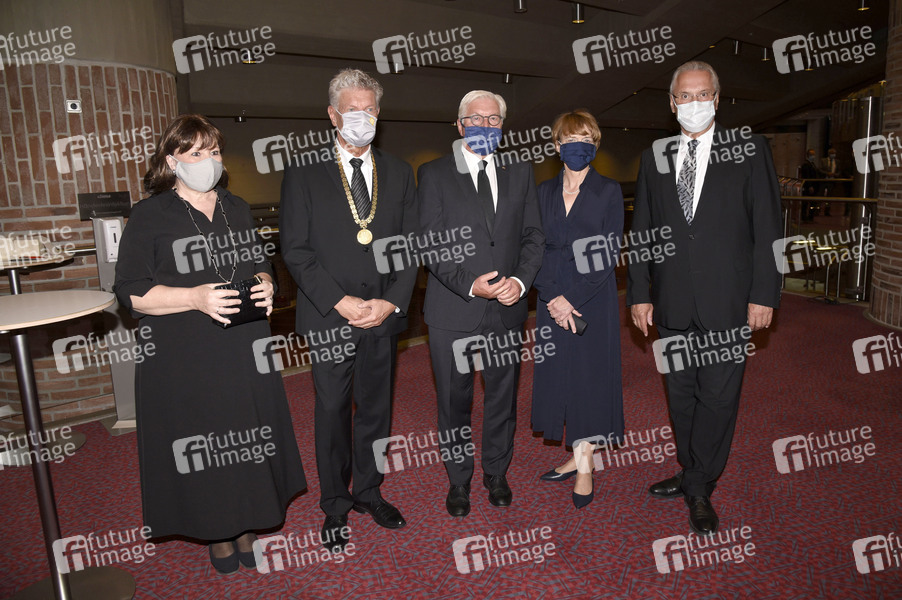 Petra Reiter, Dieter Reiter, Frank-Walter Steinmeier, Elke Büdenbender und Joachim Herrmann bei der Trauerfeier für den verstorbenen Münchner Alt-OB und Ehrenbürger Dr. Hans-Jochen Vogel in der Philharmonie des Gasteig. München, 03.08.2020