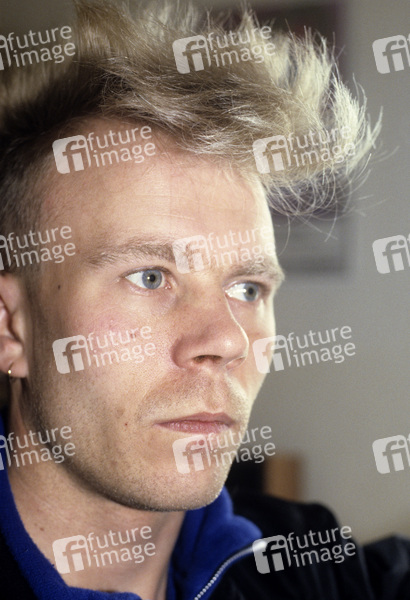 Vince Clark bei einem Photoshooting bei Mute Records. London, 14.06.1985