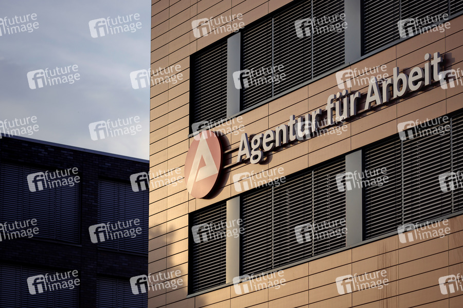 Arge-Logo an der Agentur für Arbeit in Ossendorf. Die Corona-Krise lässt die Zahl der Arbeitslosen weiter steigen, während noch ein vereinfachter Antrag für die Beantragung von Grundsicherungsleistungen ohne Vermögensprüfung gilt. Köln; 04.08.2020