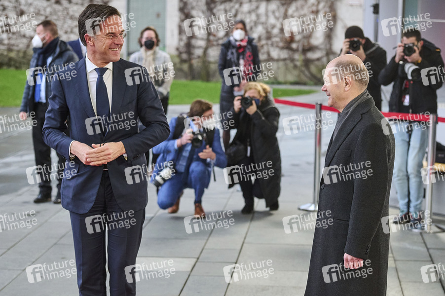 Olaf Scholz empfängt Mark Rutte mit militärischen Ehren vor dem Kanzleramt. Berlin, 13.01.2022