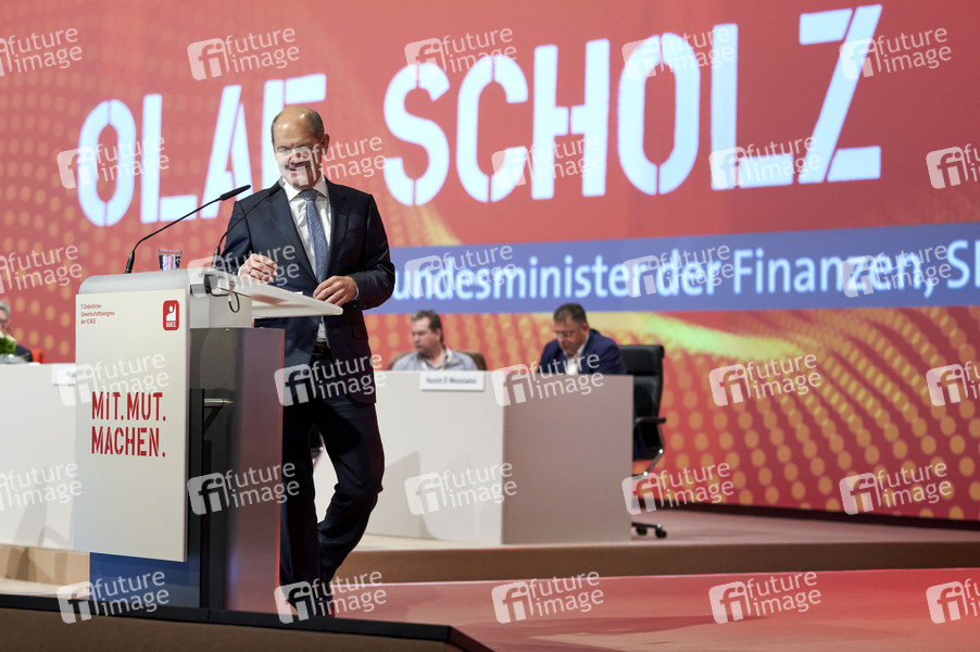 Olaf Scholz beim 7. Ordentlichen Gewerkschaftskongress der IG Bergbau, Chemie, Energie im Hannover Congress Centrum. Hannover, 27.10.2021