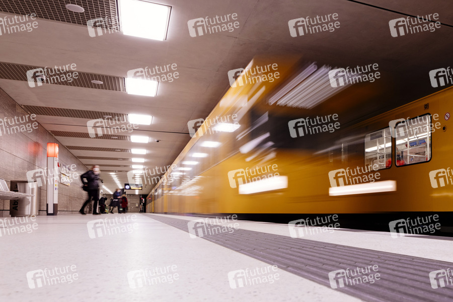 Aufgrund der Coronakrise war 2020 für die BVG ein katastrophales Jahr. Die Zahl der Fahrgäste schrumpfte auf zwei Drittel, die Ertragseinbußen liegen im dreistelligen Millionenbereich. In Bahnen und am Gleis gilt Maskenpflicht. Trotzdem wollen die Berliner Verkehrsbetriebe in den kommenden Jahren extra lange Bahnen mit einer Gesamtlänge von 50 Meter anschaffen. Im Bild die der neue U-Bahnhof 'Unter den Linden'. (Themenbild, Symbolbild) Bild aufgenommen mit Genehmigung der BVG-Pressestelle Berlin, 01.01.2021