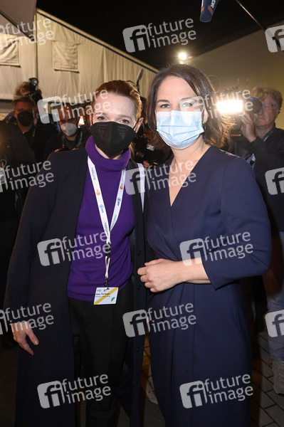 Karoline Herfurth und Annalena Baerbock beim 'Triell - Dreikampf ums Kanzleramt' von ARD und ZDF mit den Kanzlerkandidaten im Studio Berlin-Adlershof. Berlin, 12.09.2021