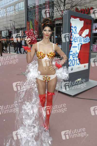 Micaela Schäfer präsentiert ihren persönlichen Berlinale Bären auf dem Boulevard der Stars, Berlin