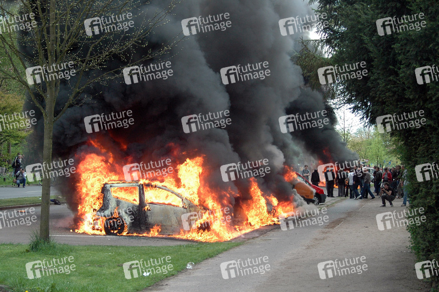Politik, Tag der Arbeit, 1. Mai, Chaoten, Linke, Autonome, Demonstranten, Demonstration, Autos, brennende Autos, Feuer, Brand