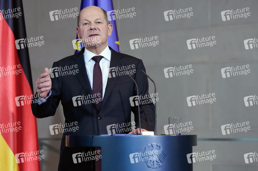 Olaf Scholz beim Empfang des Ministerpräsidenten der Republik Polen mit militärischen Ehren zu einem gemeinsamen Gespräch mit dem Bundeskanzler und anschließendem Pressestatement im Bundeskanzleramt. Berlin, 12.02.2024