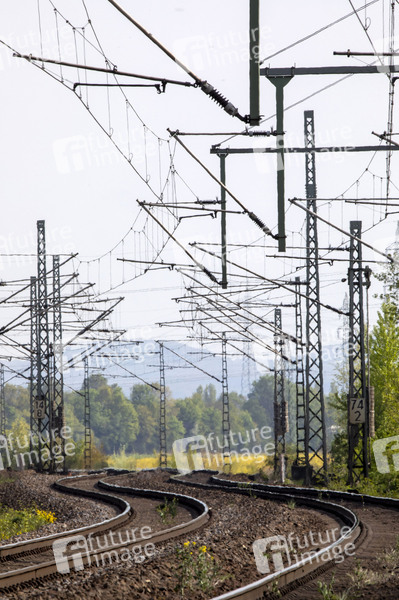 Fahrleitung, Fahrdraht, Signale, Stromabnehmer, Stromkreis, elektrische Energie, 15000 Volt, Elektrischer Schlag, Elektrizität, Bahnstromnetz, Lichtbogen, Gleichstrom, 1400 Ampere, Stromstärke, Quertragwerk, Rillenfahrdraht, Stromschienenoberleitung, Strommaste, Unterwerk, Erdung, Kurzschluss, Blitzschutz, Korrosion, Fahrleitungssysteme, Hauptstrecke, Nebenstrecke, Verkehrssektor, Verkehrsbranche, Fahrstromversorgung, Herausforderungen, Deutsche Bahn, DB, Bahnindustrie, Eisenbahnen, Güterwagen, Transportvolumina, Güterzüge, Versorgungssicherheit, Rail, Cargo, Europäischen Wirtschaft, Deutsche Wirtschaft, Warentransport, Logistiklösungen, Logistik, Logistik-Center, Waggon, Strecken, Schiene, Dienstleistungen, Transferverbindung, Symbolfoto, Symbolbild