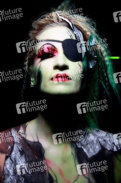 Bodypainting, Erotik, Frau, Mädchen, nackt, drinnen, weiblich, Körperkunst, Kunst, Malerei, Augenklappe, erotic, woman, girl, nude, indoor, female, body art, body painting, eyepatch