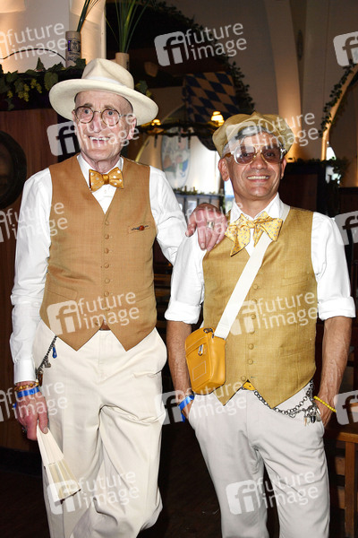 Günther Krabbenhöft und Carlos Eduardo Davila Federico beim Maibockanstich im Hofbräu Wirtshaus Berlin. Berlin, 30.04.2024