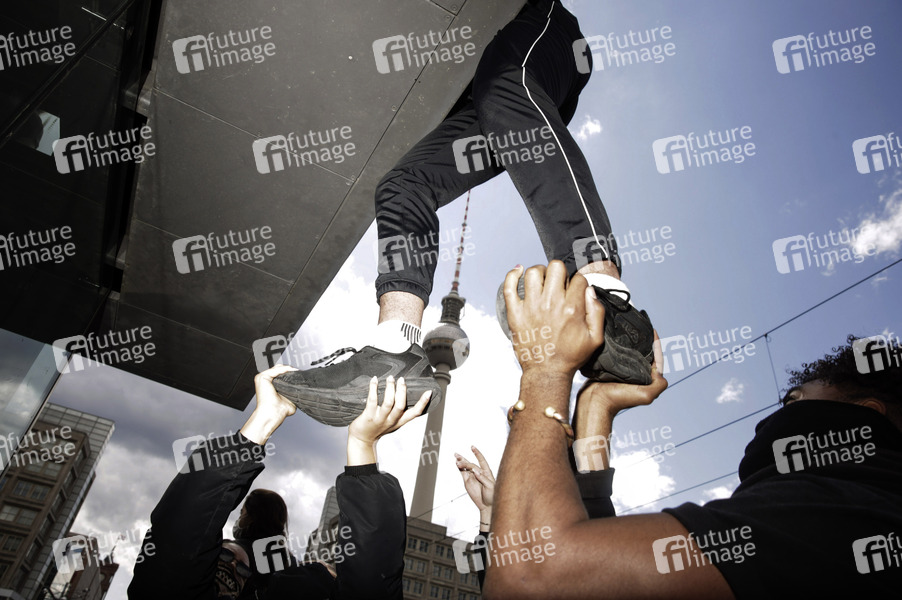 Demonstranten bei der 'Silent Demo' gegen Rassismus am Alexanderplatz. Berlin, 06.06.2020