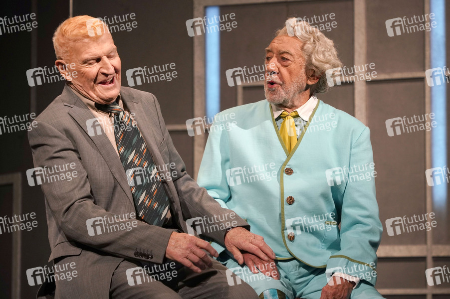 Peter Bause und Dieter Hallervorden bei der Fotoprobe des Theaterstücks 'Gottes Lebenslauf' im Mitteldeutschen Theater in der Marienkirche. Dessau, 03.09.2022