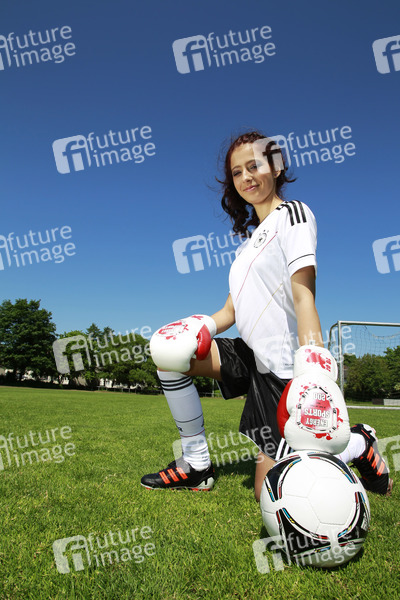 SOLsnap Cover-Model Juni 2012, Zuebeyde, Fußball, Fußballspielerin, Trikot, Ball, Boxhanschuhe