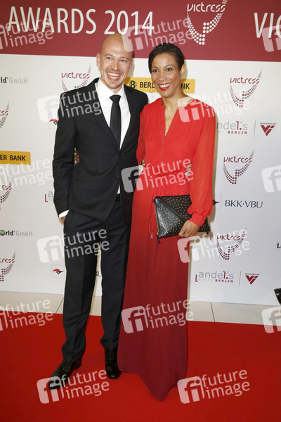 Annabelle Mandeng und Freund Matthias Pieper bei der 9. Victress Awards Gala im andel’s Hotel. Berlin, 28.04.2014
