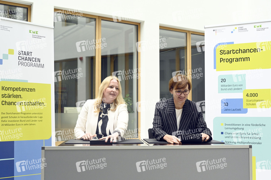Christine Streichert-Clivot und Bettina Stark-Watzinger bei der Bundespressekonferenz Unterzeichnung des Startchancen-Programms im Haus der Bundespressekonferenz. Berlin, 04.06.2024