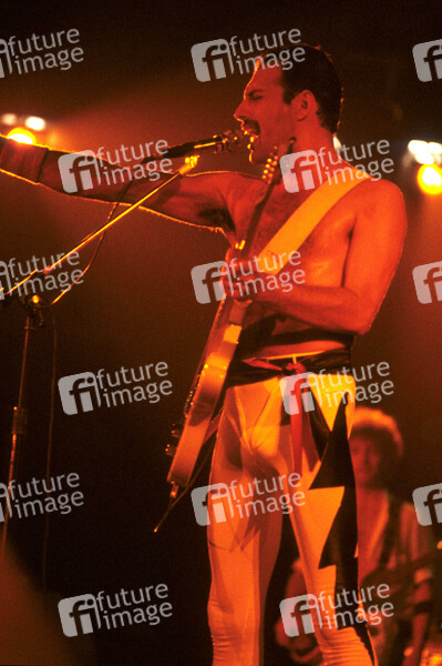 Freddie Mercury von Queen live bei einem Konzert der 'Works'-Tour in der Wembley Arena. London, 07.09.1984