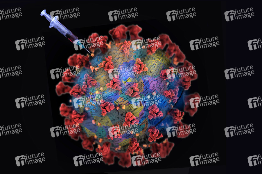 Symbolbild Coronavirus Impfstoff für die Welt - Bildmontage unter Verwendung einer Grafik des CDC released unter public domain