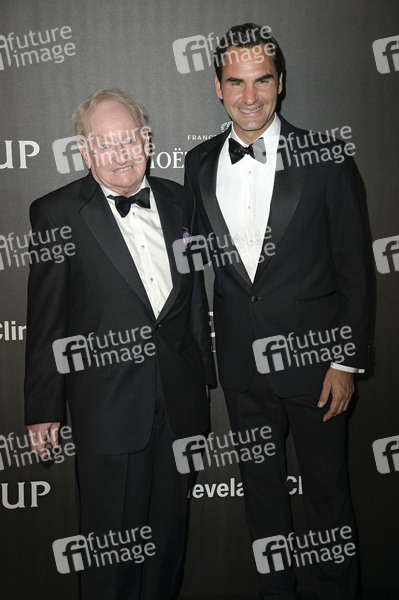 Rod Laver und Roger Federer bei der Eröffnung des Laver Cup 2024 im Westhafen Event- und Kongresszentrum. Berlin, 19.09.2024