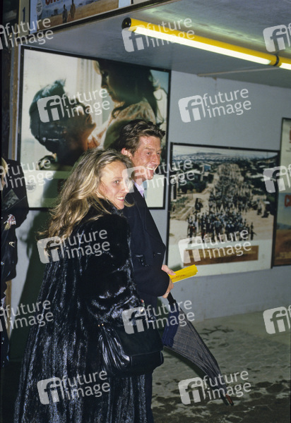 Donna Peacock mit Ehemann John Hurt bei der Gala-Premiere des Dokumentarfilms 'Chuck Berry Hail! Hail! Rock 'n' Roll' im Empire Leicester Square. London, 17.02.1988