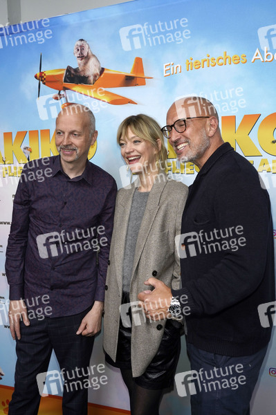 Veit Helmer, Heike Makatsch und Benno Fürmann bei der Premiere des Kinoflims 'Akiko - der fliegende Affe' im Filmtheater am Friedrichshain. Berlin, 25.05.2025