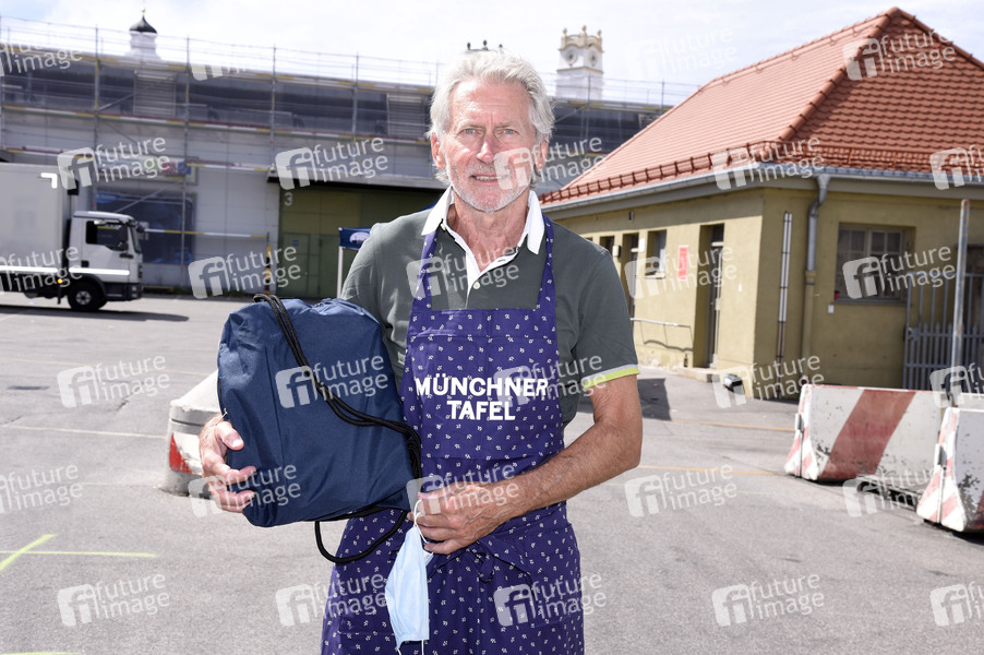 Paul Breitner bei der Übergabe von Schulstart-Spenden der Firma Amazon an 2300 sozial benachteiligte Kinder an der Münchner Tafel in der Großmarkthalle. München, 28.08.2020
