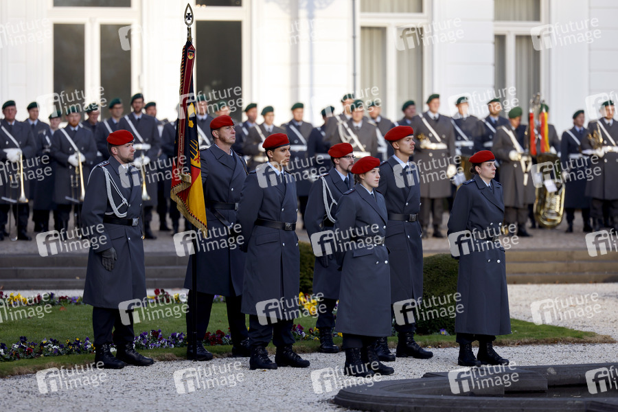 Rekruten und Rekrutinnen nehmen anlässlich des 66. Gründungs-jahres der Bundeswehr am feierlichen Gelöbnis vor der Villa Hammerschmidt in Bonn teil. 50 Soldatinnen und Soldaten des ABC-Abwehrbataillons 7 aus Höxter und des ABC-Abwehrbataillons 750 aus Bruchsal legen hier ihr Gelöbnis ab. Bonn, 12.11.2021