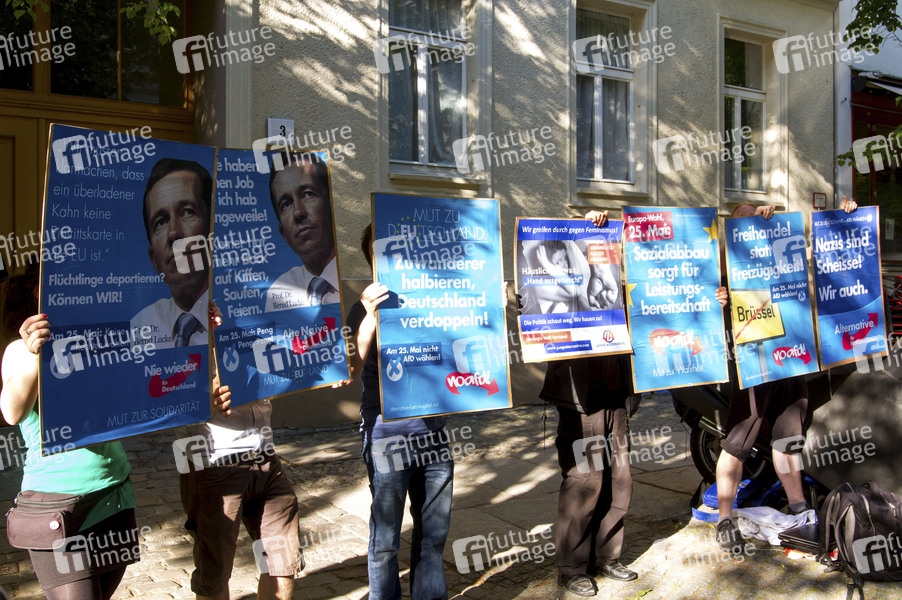Kundgebung gegen die AfD vor dem Büro der Zivilen Koalition e.V. in derZionskirchstraße. Berlin, 21.05.2014